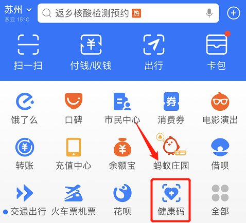 1、打开支付宝主界面,选择健康码;