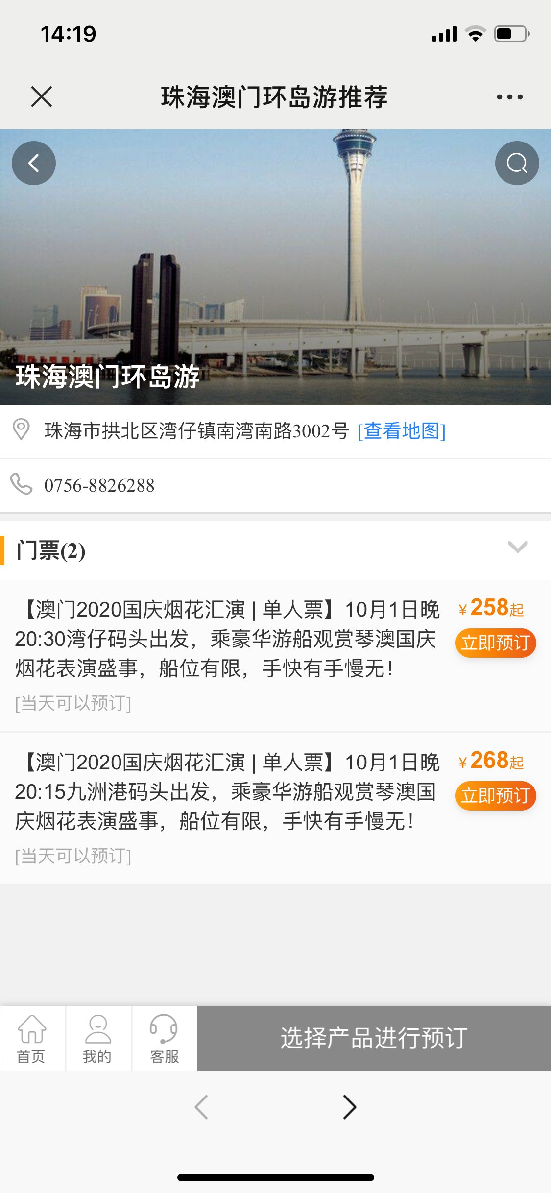 地点:澳门旅游塔对出海面