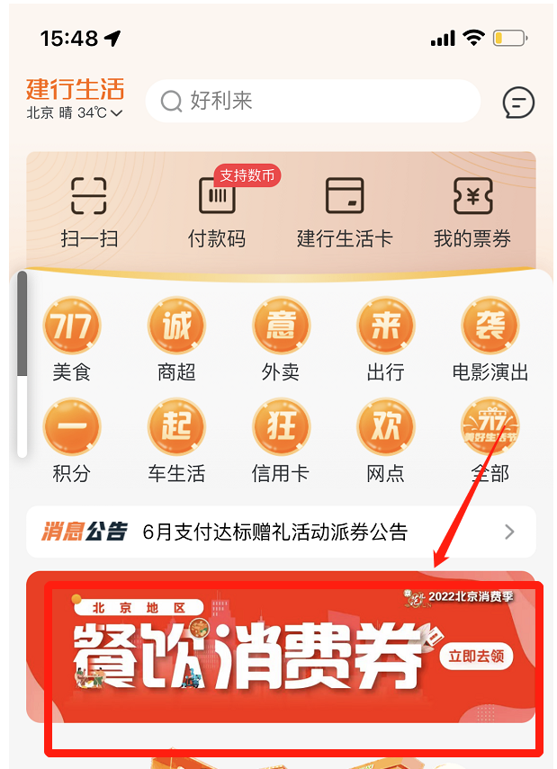 北京餐饮消费券建行生活app官方领券入口:建行生活app