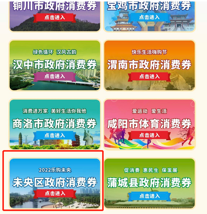 点击陕西消费券,下滑找到未央区消费券,即可领取