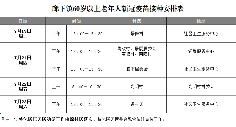 当前,廊下镇老年人疫苗接种工作正有序推进,60岁及以上老年朋友请尽快来接种新冠疫苗吧~