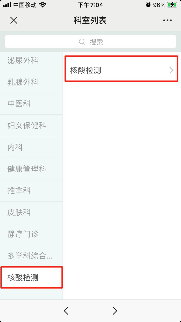 在【核酸检测】一栏,点击【核酸检测】进入预约界面;