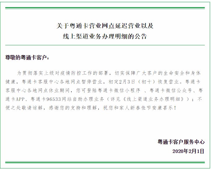 粤通卡网点初定2月3日(初十)恢复营业