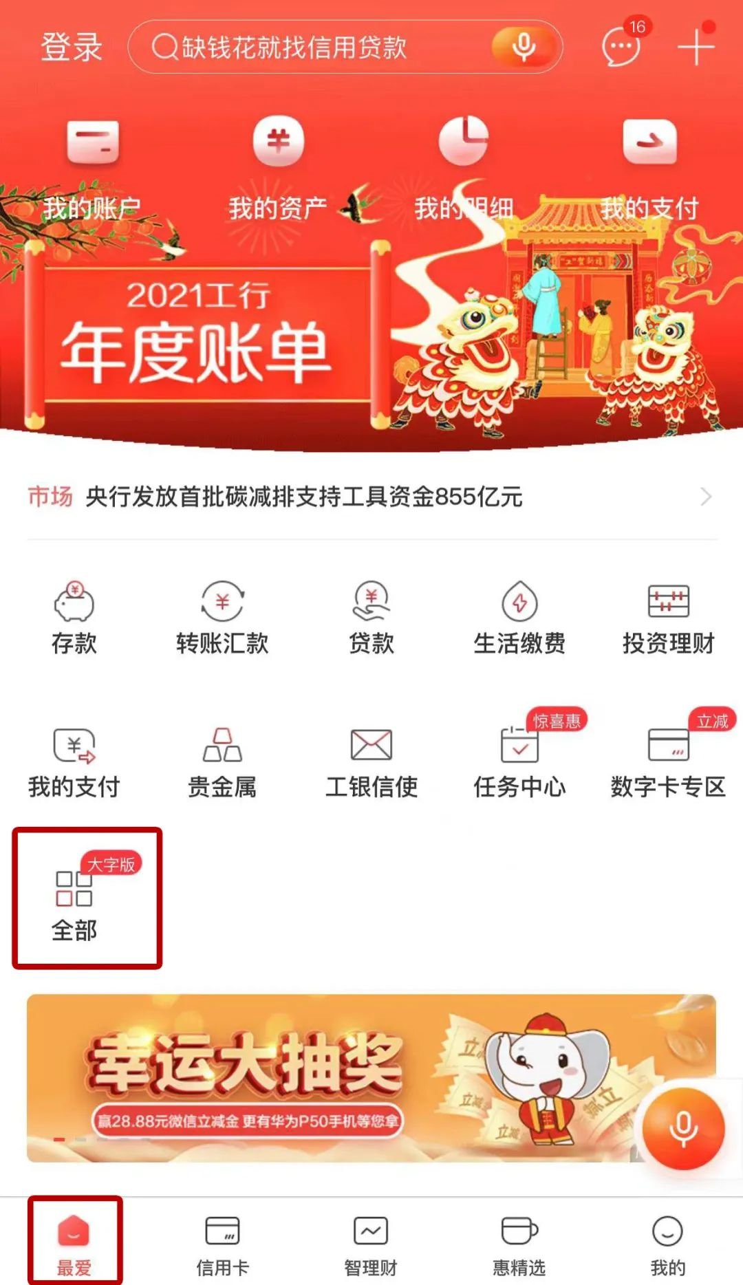 下载/登录工行手机银行APP,点击“最爱”-“全部"-“纪念币预约”即可进入预约页面。