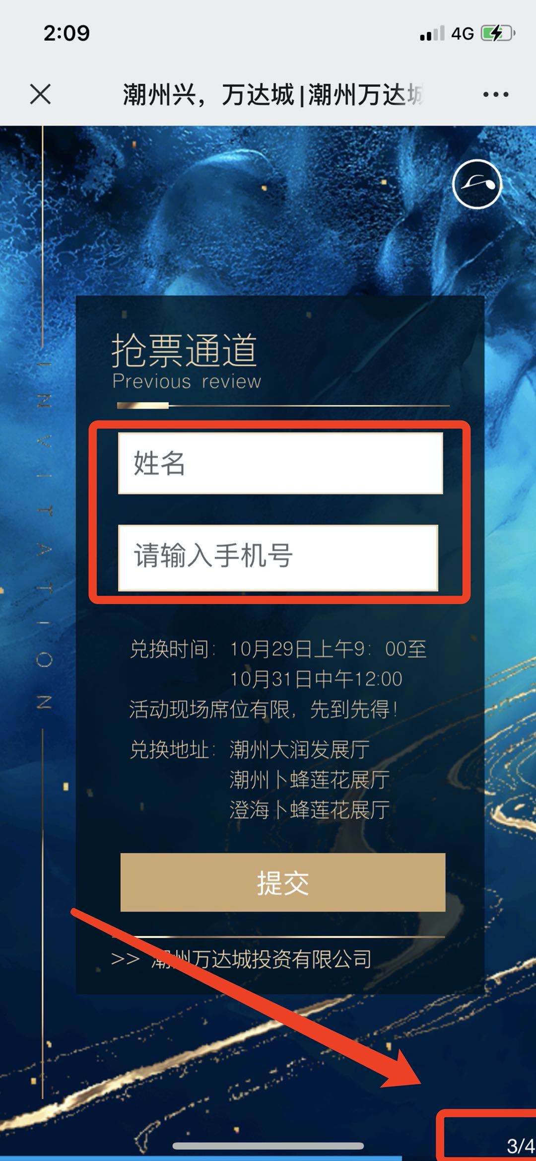门票领取时大家需要耐心下滑到第三页,下图这个页面才能成功领取哦,大家要输入自己的姓名和手机号码。