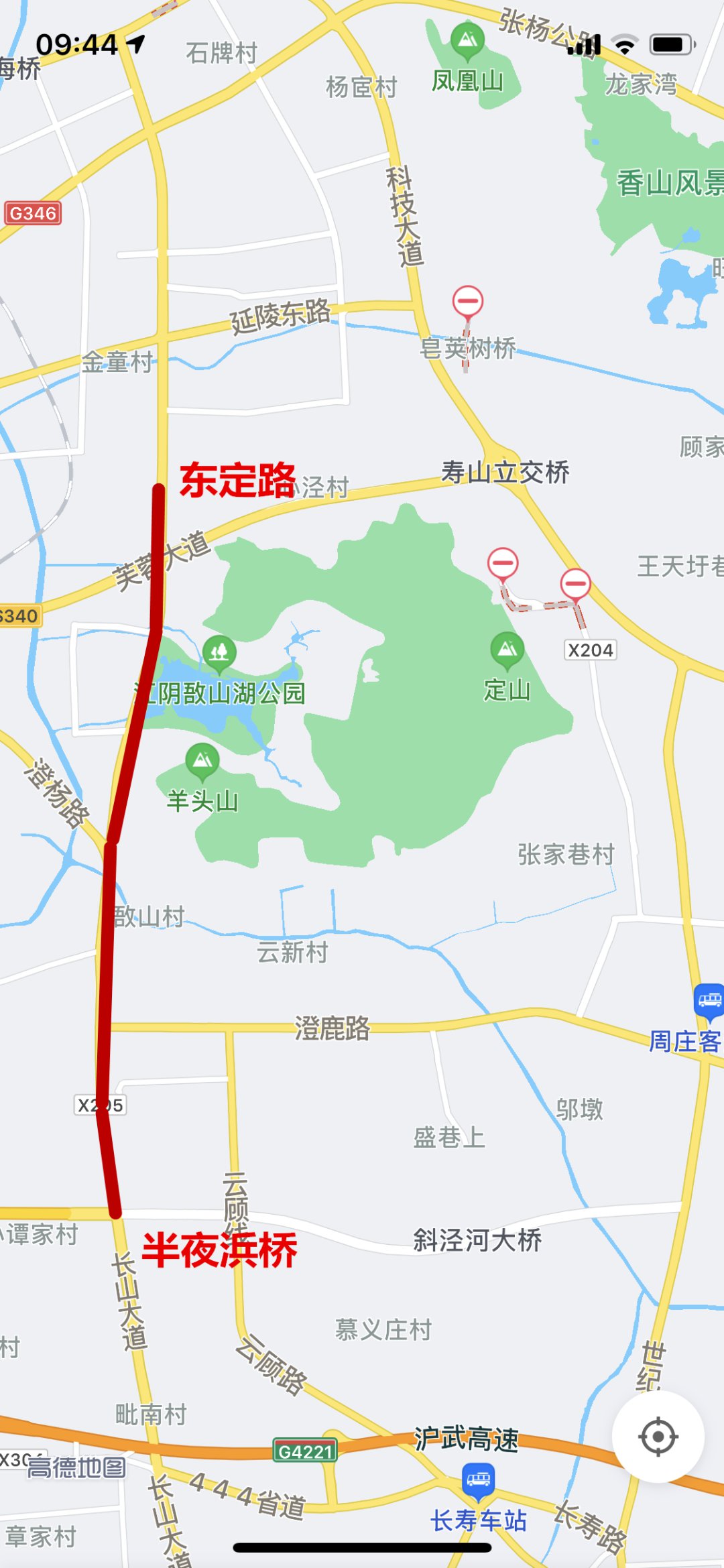 因长山大道快速化改造施工需要,对长山大道主线东定路至半夜浜桥段(江阴大道路口北)南北方向实施封闭施工,该段落内平交道口东西方向保持通行。施工封闭时间为2020年9月18日至2023年9月17日。封闭施工区域内禁止一切社会车辆、行人通行,过往车辆请绕行。施工给您出行带来不便,敬请谅解!特此通告!
