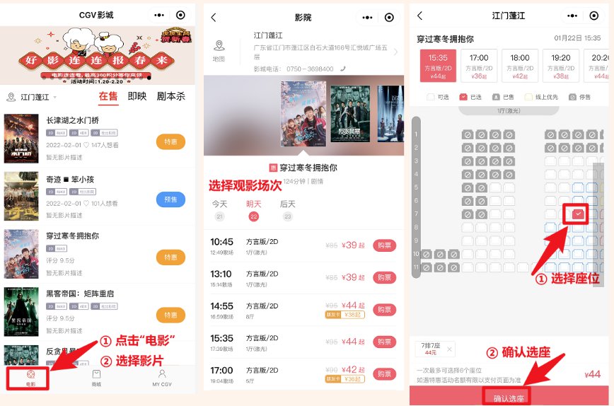 ▶若选择线下购票,到CGV影城告知前台“电影兑奖码”及“密码”,即可购票观影。