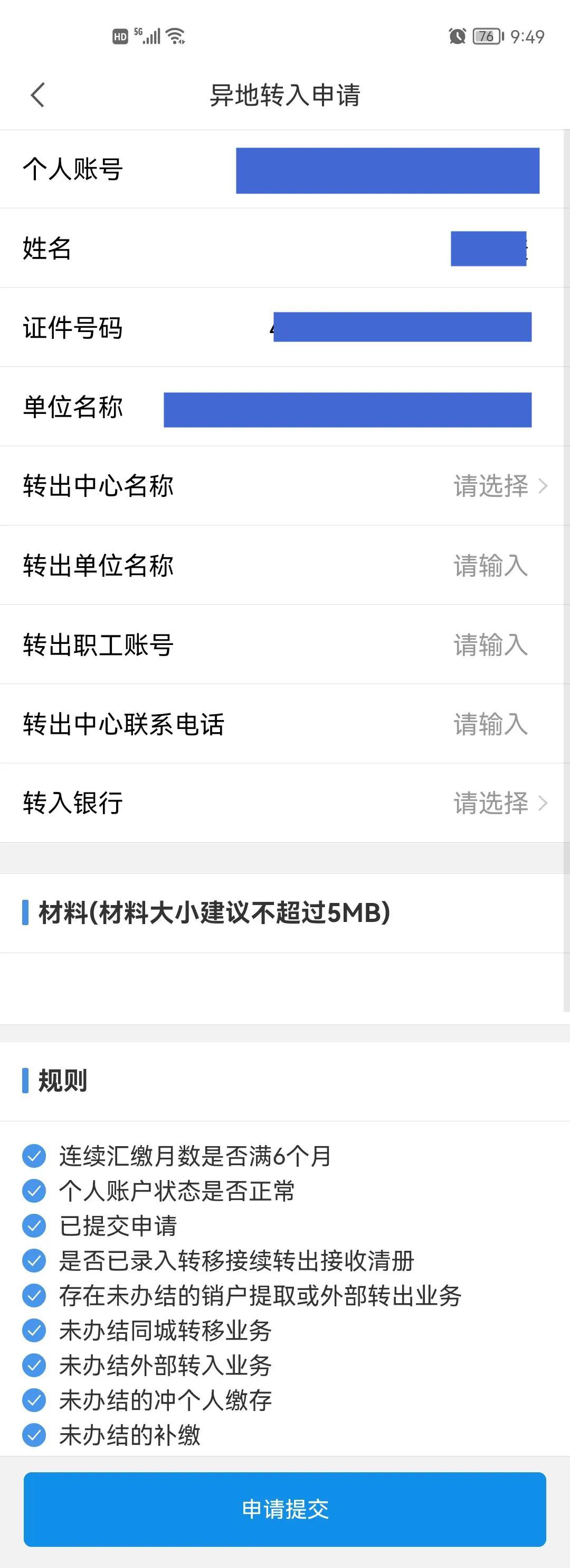 1.进入页面后,选择【异地转入申请】,根据页面提示填入信息即可。Ps:建议职工先把页面拉到最后,看清楚是否符合转移条件。