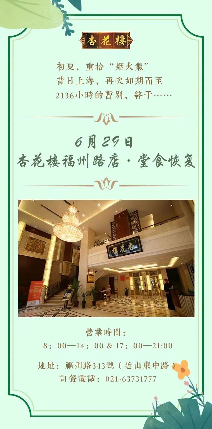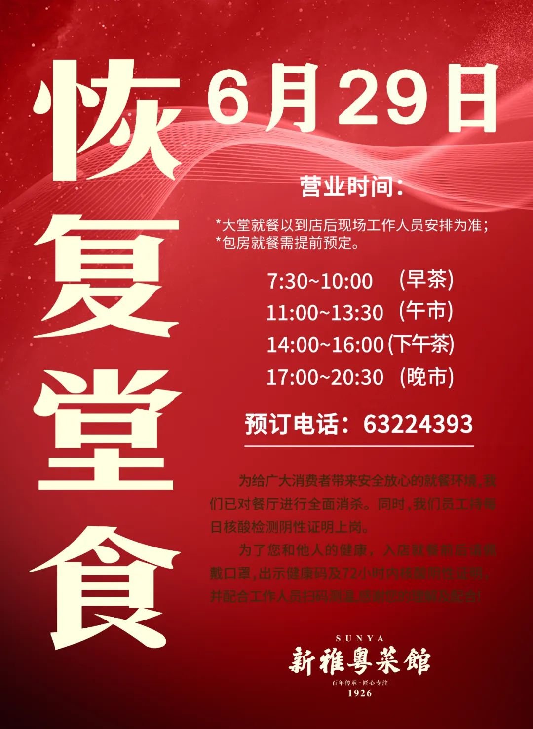 截至目前,新雅粤菜馆、和记小菜、杏花楼、黔香阁、小杨生煎等发布恢复堂食公告,具体如下。
