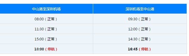 因受台风“鹦鹉”影响,2020年6月13日、14日中山港航班安排如下: