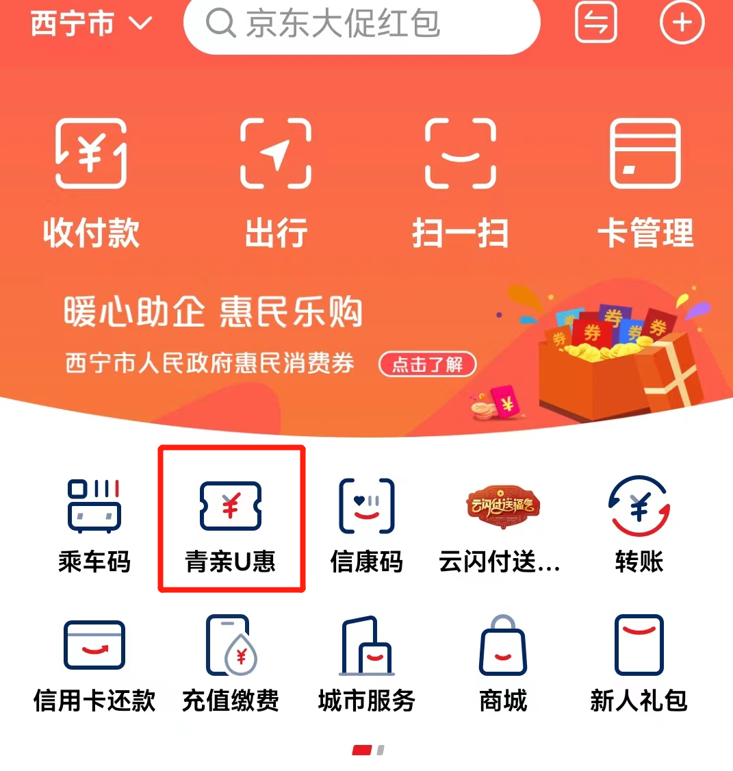 1.下载云闪付APP,自动定位或手动定位到西宁;