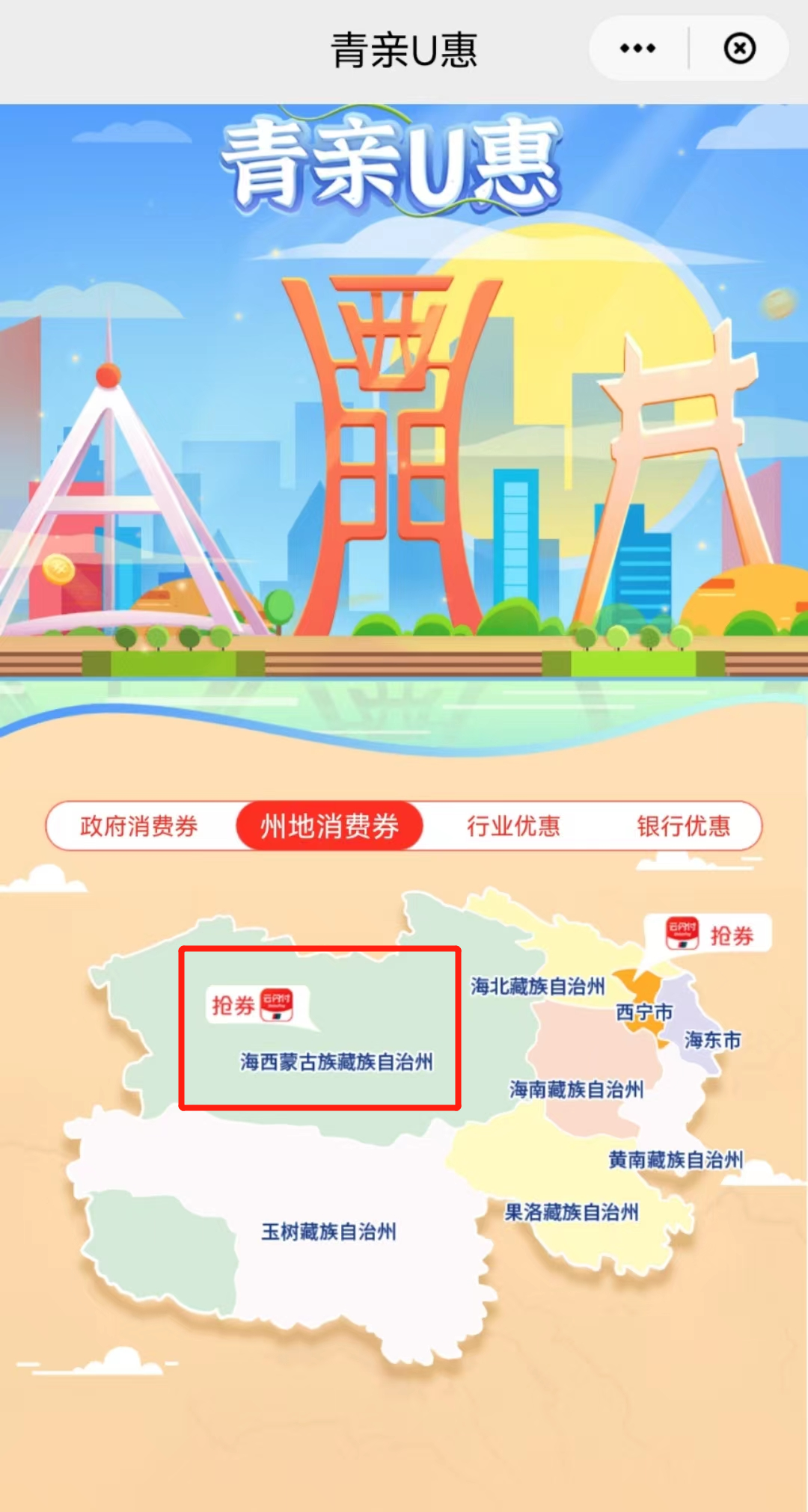 4.点击“海西蒙古族藏族自治州”抢券图标,立即抢券;