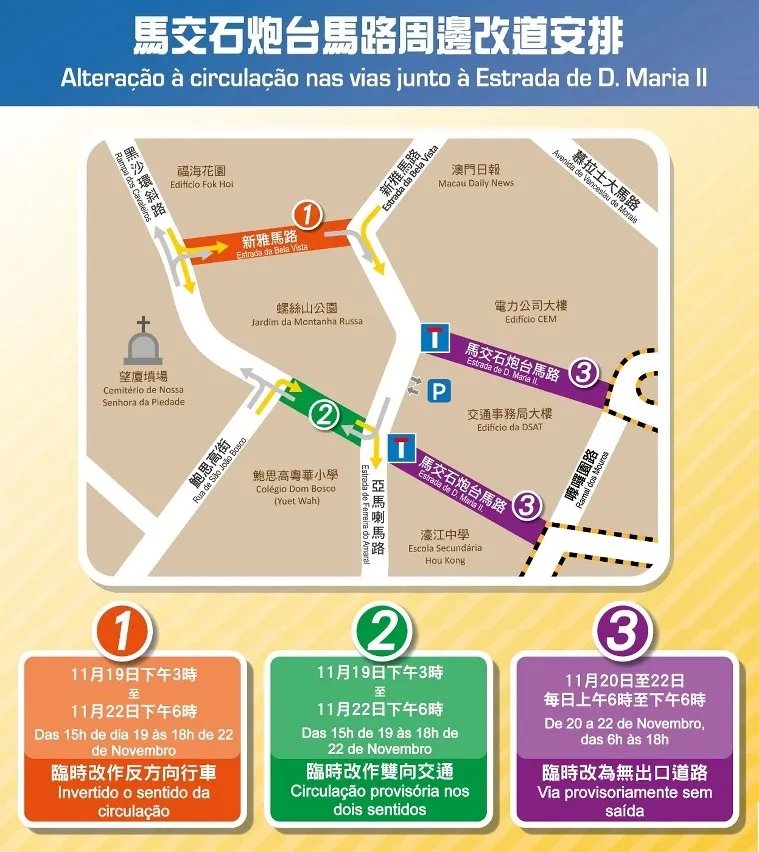 2020澳门格兰披治大赛车临时交通改道安排(附示意图)