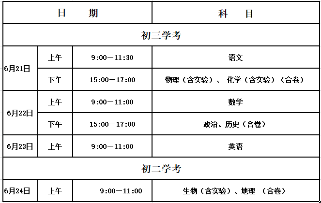 考试时间及科目安排