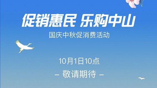 10月1-10日,“促销惠民,乐购中山”国庆中秋促消费活动,将安排500万资金,以支付宝为活动第三方平台发放。