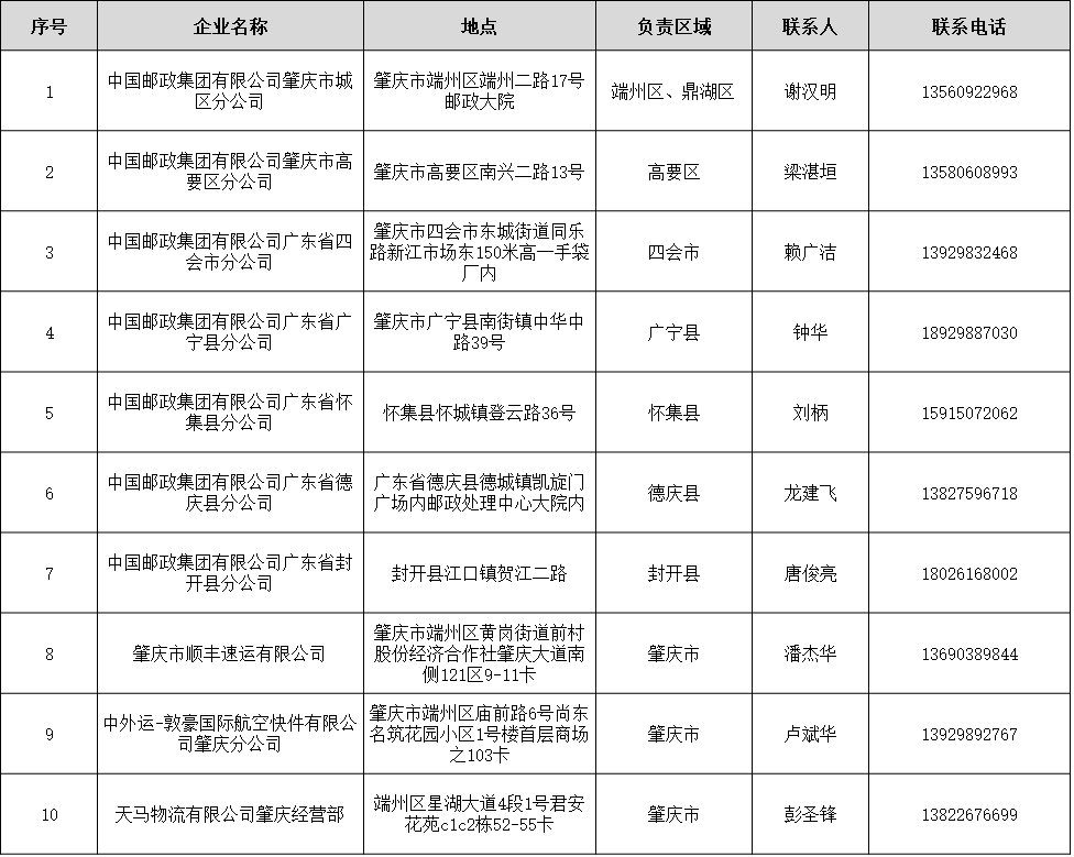 肇庆市进境邮件快件集中消毒取件点信息(点击查看大图↓↓↓)