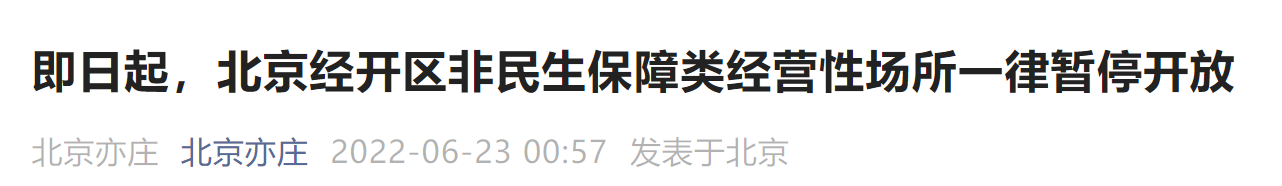 6月23日起北京经开区暂停堂食通知