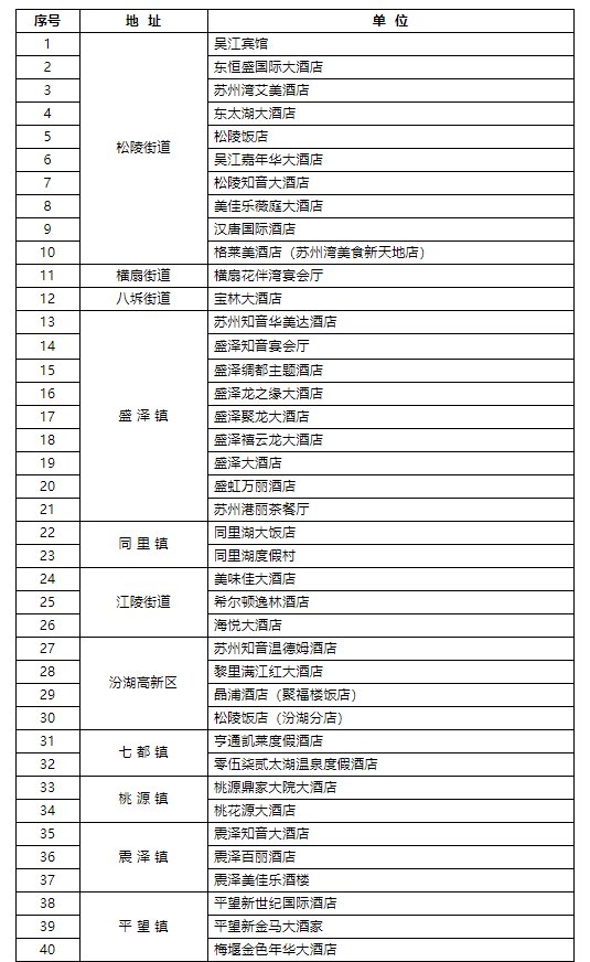 吴江首批恢复宴会预订餐饮企业名单
