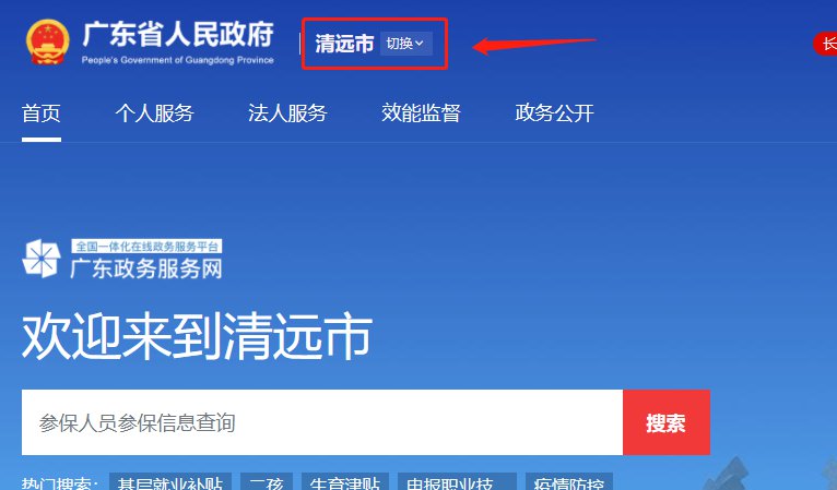 第二步:点击“切换区域和部门”,选择“清远市-清远市医保局”,如下图所示: