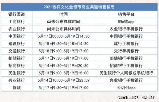 为大家整理了部分商业银行渠道销售2021吉祥文化金银纪念币的相关信息。