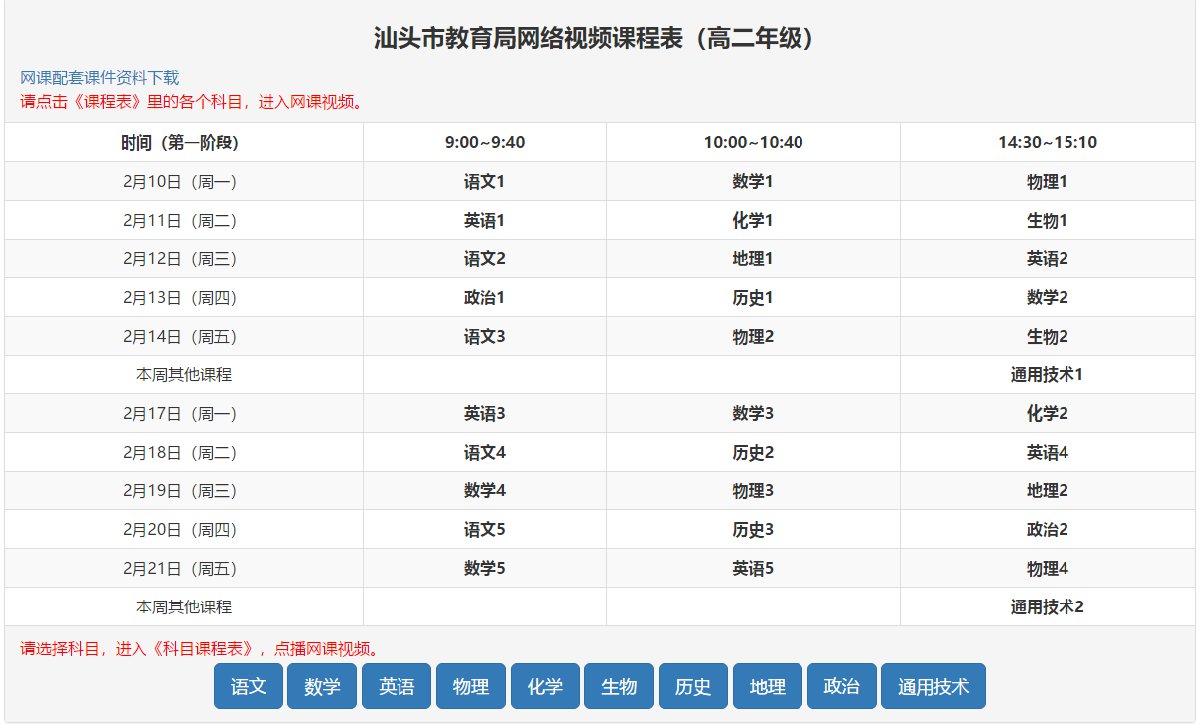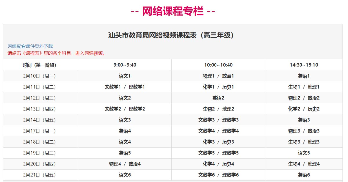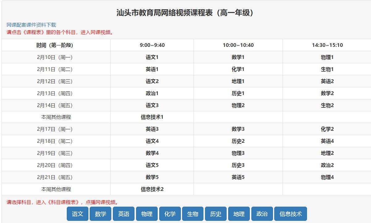 汕头教育局视频网课高中课程表 汕头市网课平台