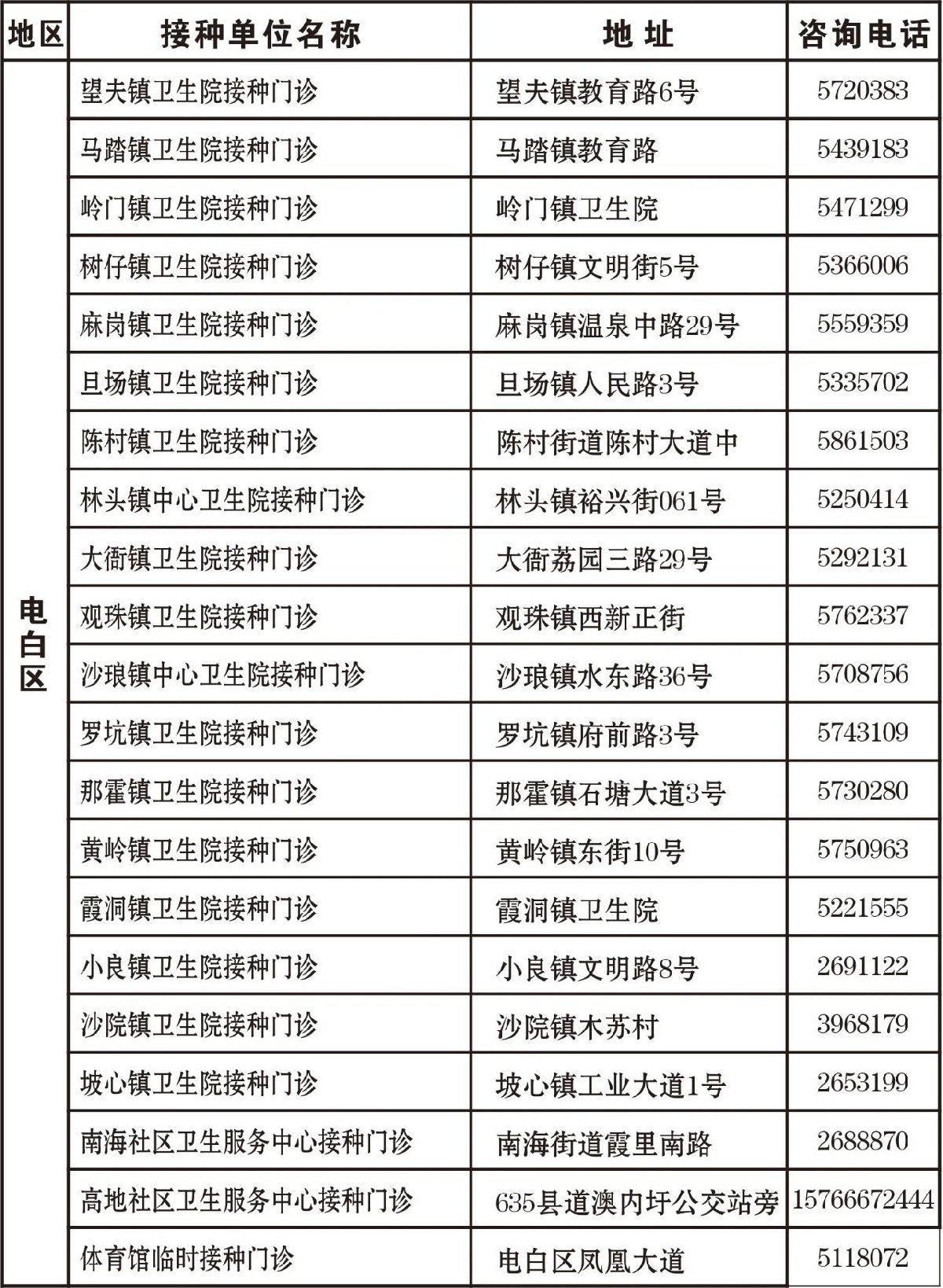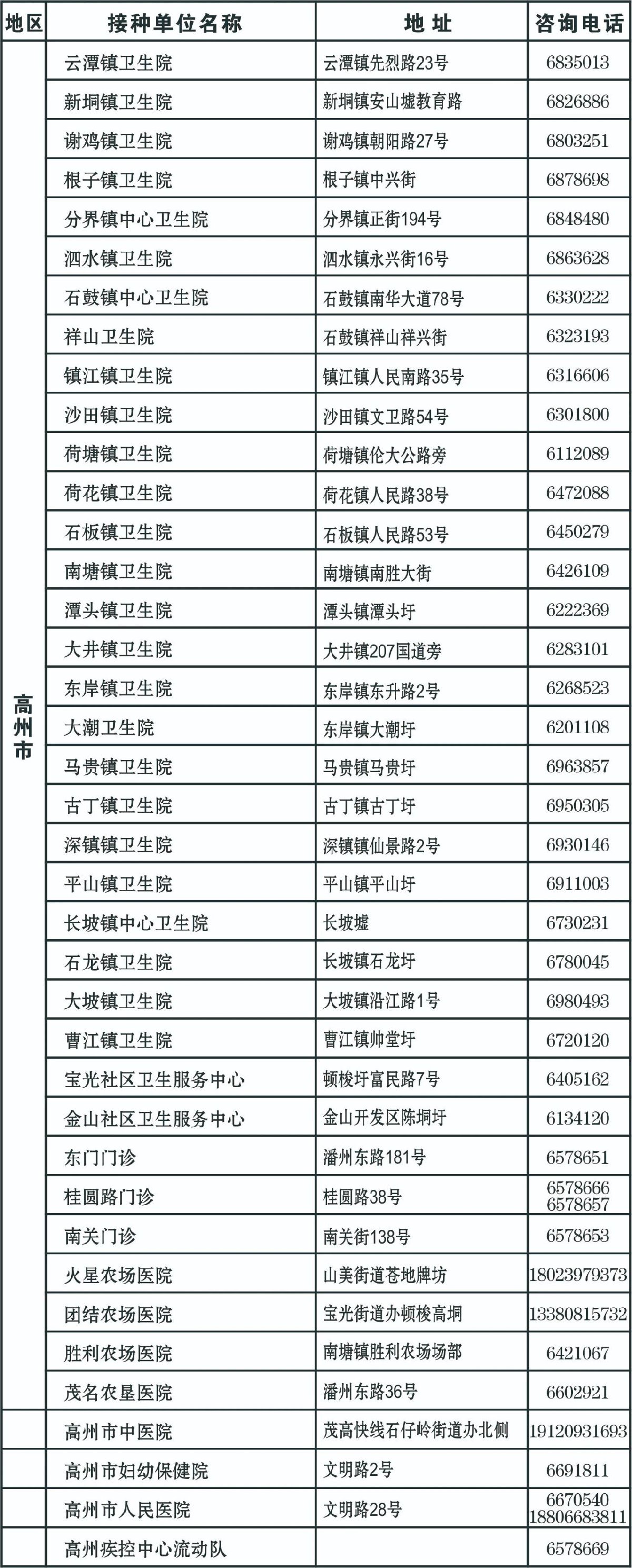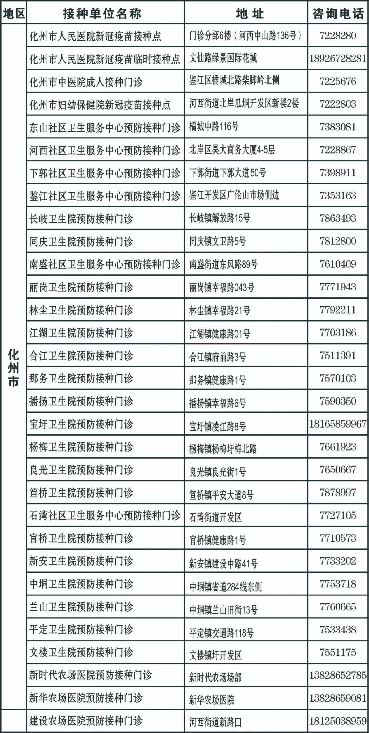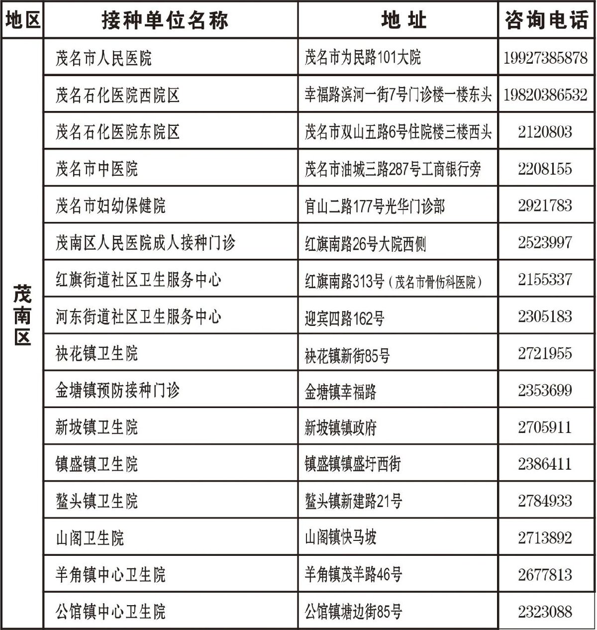 2021年茂名市提供新冠疫苗接种服务接种点名单