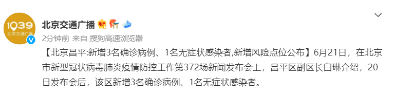 确诊病例3:居住在昌平区小汤山镇双兴苑东区5号楼,6月13日、16日、18日核酸检测结果均为阴性。