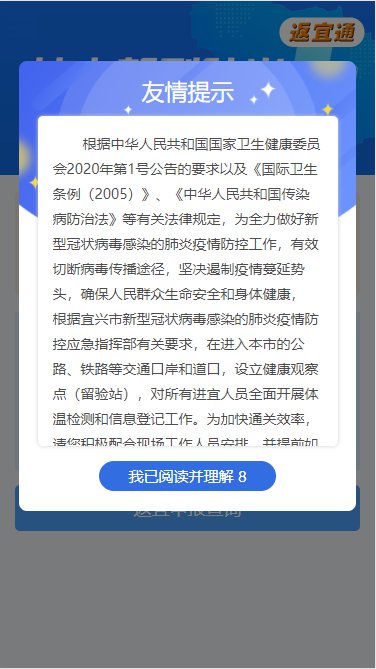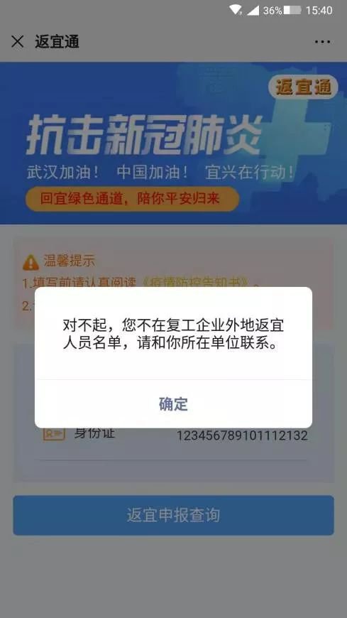 企业复工复业申请通过后,接到企业复工复业通知的人,不能立即启程出发。相关人员必须在进入宜兴前,提前点击登录“宜兴发布”或“宜兴公安微警务”微信公众号“返宜通”模块,查询是否通过审核并核对信息后生成“返宜通”二维码,同时截屏保存。在进入宜兴境内高速公路、国省道、车站等防疫检查点时,外地回宜复工复业人员,须主动出示截屏二维码和有效身份证,经身份验证、信息比对、体温检测正常后方可通过。外地复工复业人员返宜后,由所在企业按要求落实好自我隔离制度。
