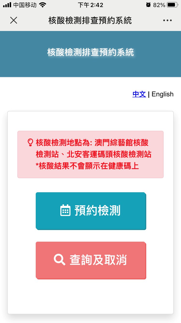 澳门免费核酸检测预约