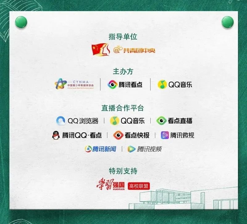“青春不毕业”2020高校“云”毕业网络直播活动由@共青团中央 指导,中国青少年新媒体协会、腾讯看点、QQ音乐联合主办。同学们可以把直播间分享给好友及社群,或在QQ浏览器、QQ音乐中搜索“云毕业”观看直播。