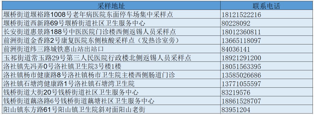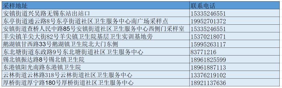 拓展阅读:无锡市外省(不含涉疫地区)来锡返锡人员免费核酸采样点(拨打固定电话,需加区号0510)