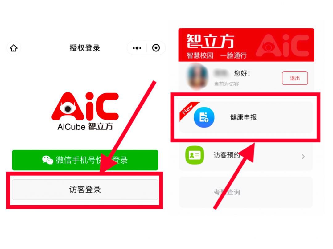 1)进入小程序后,使用【访客登录】-点击【健康申报】进入并填写表单;