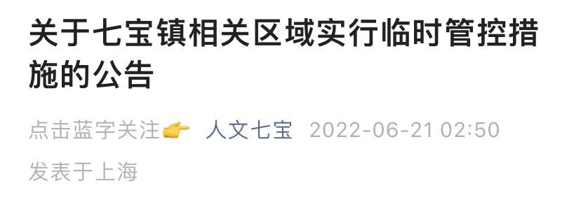 1. 关于七宝镇相关区域实行临时管控措施的公告