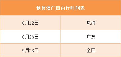8月26日起,广东省公安机关出入境管理部门恢复办理广东省居民赴澳门旅游签注