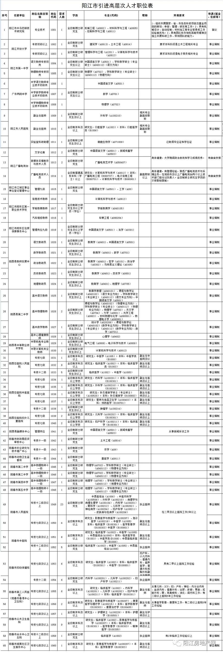 阳江市引进高层次人才计划需求请查看《阳江市引进高层次人才职位表》(附件1)