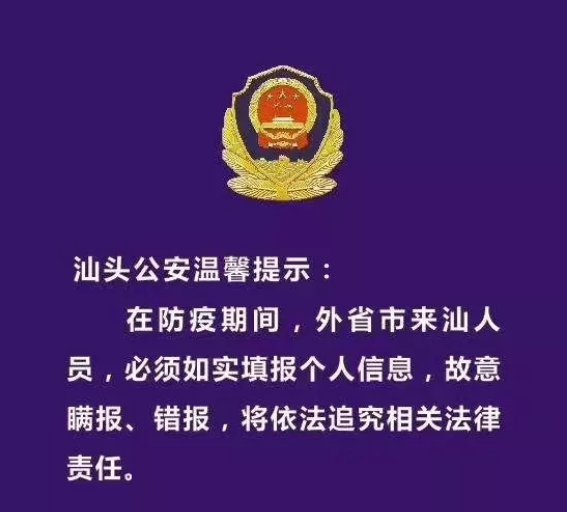 当前正处在新冠肺炎疫情防控的关键时期,为有效控制疫情,严防疫情输入、扩散蔓延,所有外省市来汕人员需进行个人信息填报,汕头市公安局呼吁大家主动配合,详细、如实填写。