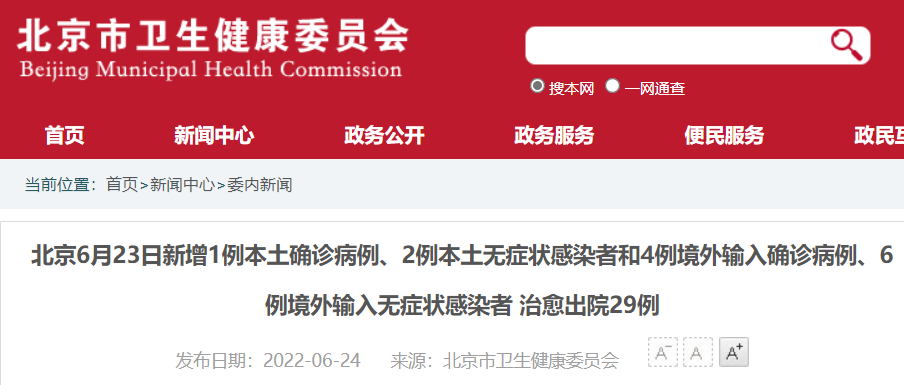 确诊病例2:中国籍,6月22日从中国台湾到达北京首都机场,海关经健康筛查并进行核酸检测后,经闭环管理送至集中隔离酒店,当日报告核酸检测结果为阳性,6月23日诊断为确诊病例。