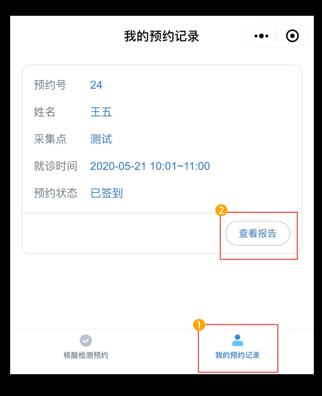 如果您是通过慧心核酸检测的预约平台预约核酸检测的,进入预约平台,点击右下方我的预约记录,报告出来后即可点击查看报告查看。