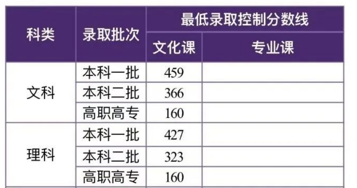 文科:本科第一批459分;本科第二批366分;高职高专160分。