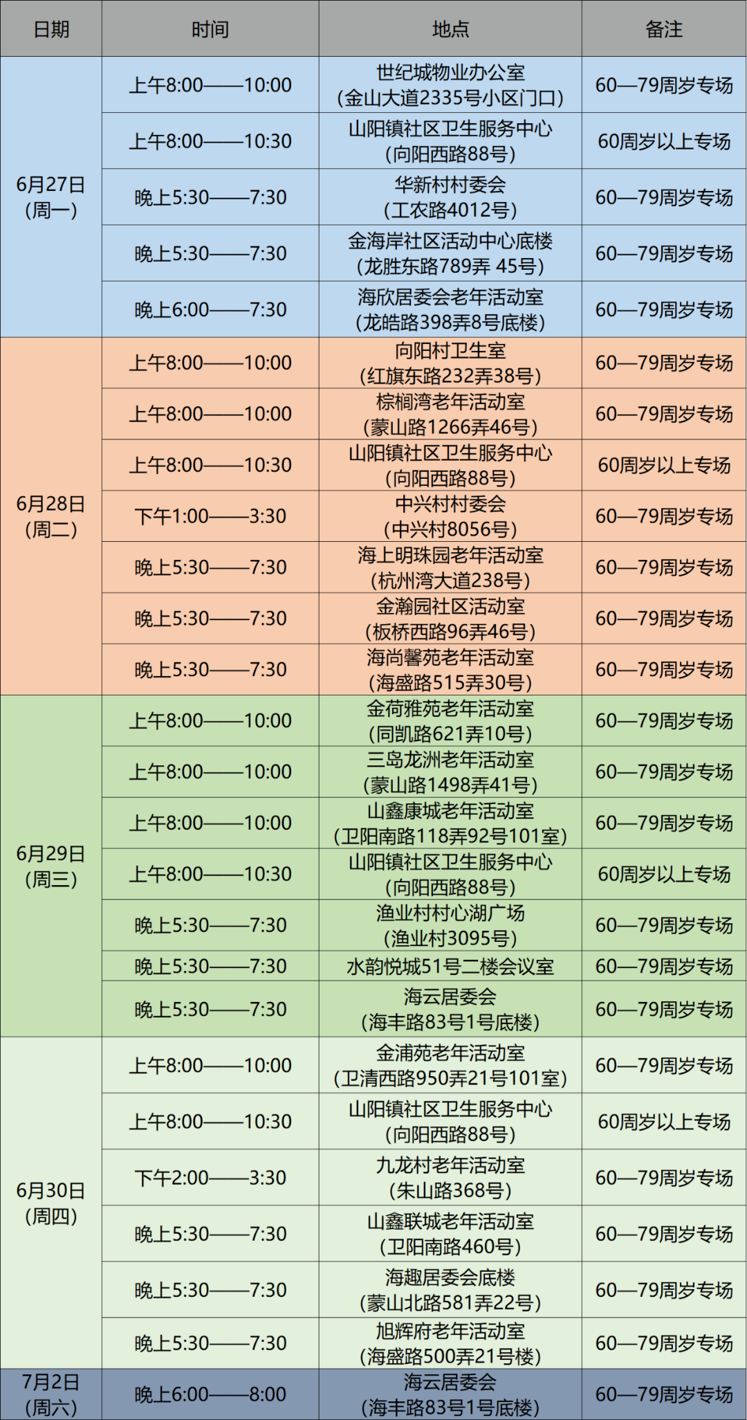 金山各街镇(高新区)新冠疫苗接种安排发布,为不断筑牢人群免疫屏障,方便群众就近及时接种新冠病毒疫苗。