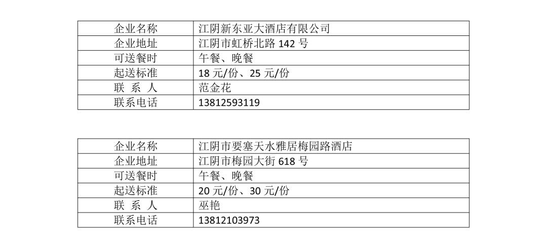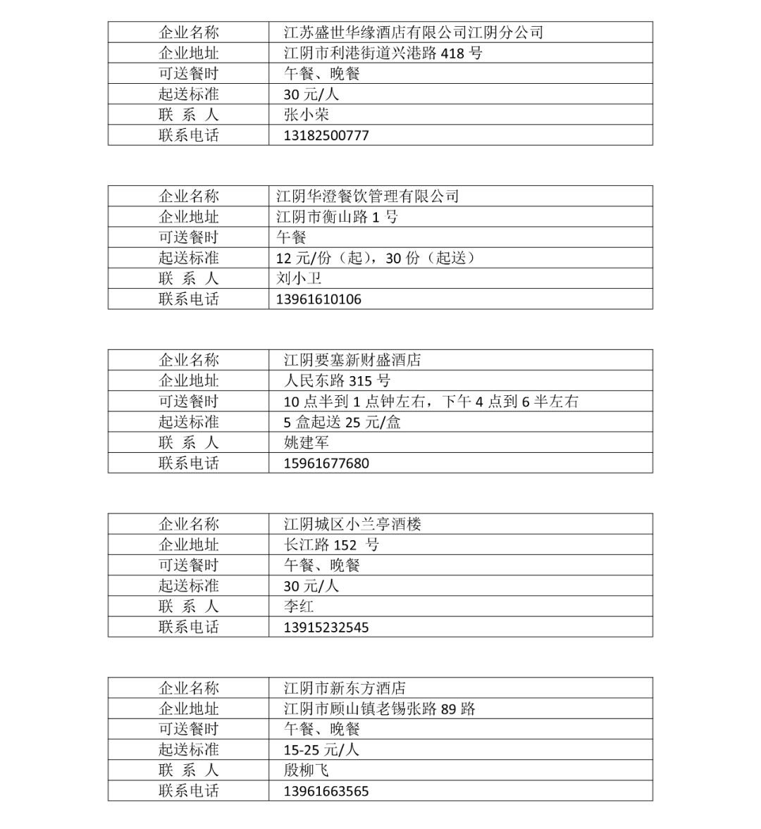 为认真贯彻落实江阴市新型冠状病毒感染的肺炎疫情防控应急指挥部关于做好疫情防控的工作要求,尽可能避免人员密集就餐,防止群体性聚餐可能引发的风险,保障疫情防控期间机关、企事业单位员工和市民用餐,根据《关于做好疫情防控期间全省团膳供应保障工作的通知》(苏商服传〔2020〕65号)等文件要求,在江阴市商务局的工作指导下,我会积极参与疫情防控工作,发挥会员餐饮企业优势,初步遴选了一批具有一定规模的团餐经营服务单位,供我市机关、企事业单位和市民选择,并向社会公布。