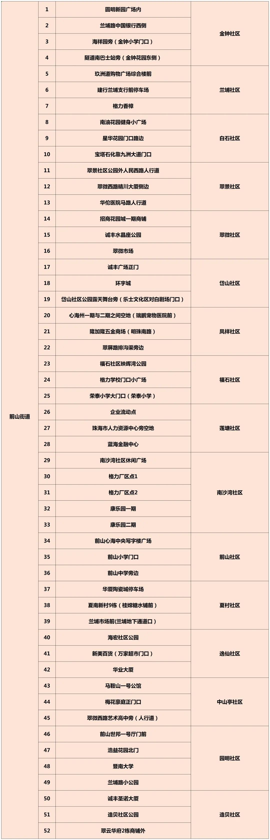 香洲区核酸采样点分布图(3月31日)