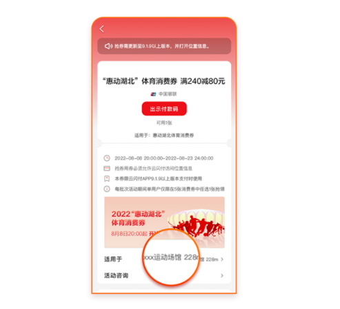 云闪付湖北体育消费券哪些可以用?
