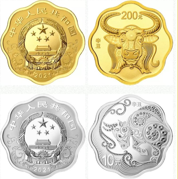 3.2021中国辛丑(牛)年梅花形金银套币(非封装)