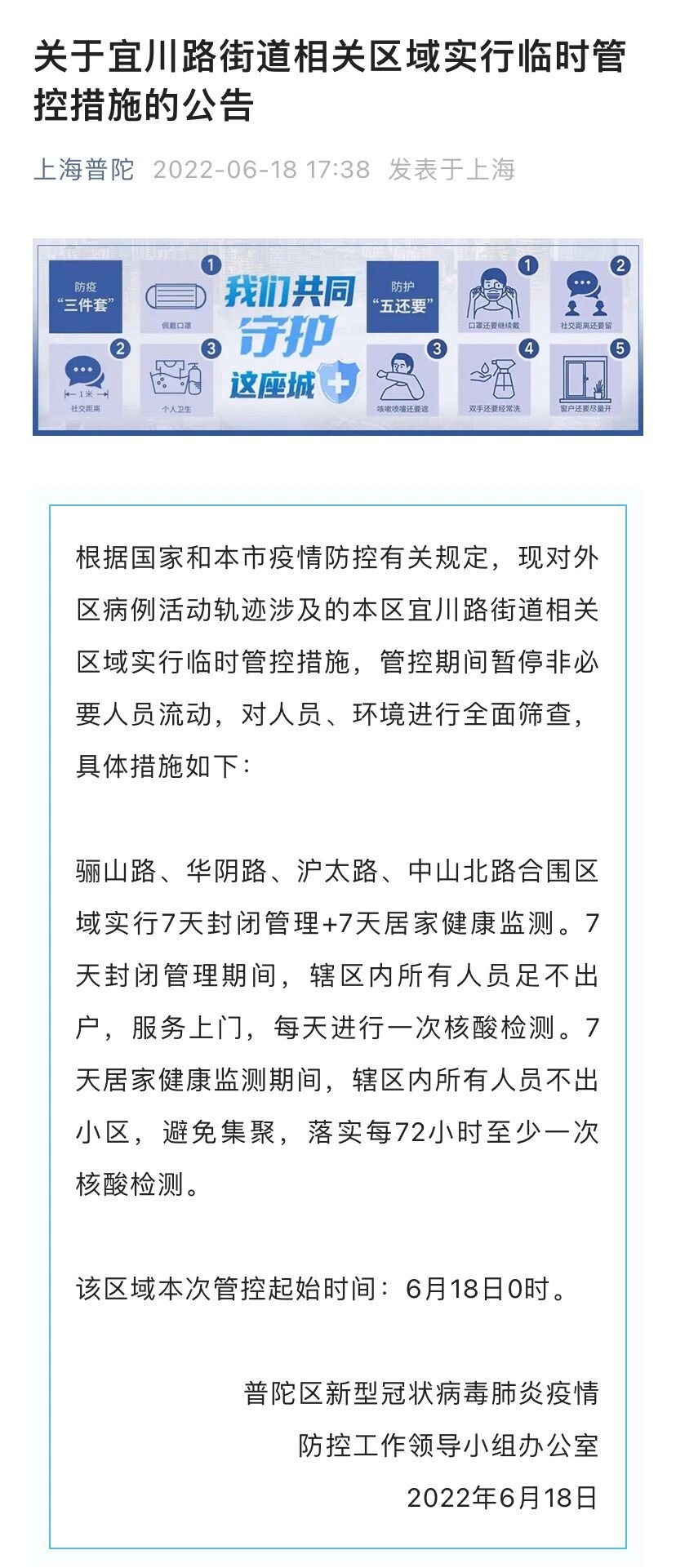 该区域本次管控起始时间:6月18日0时。