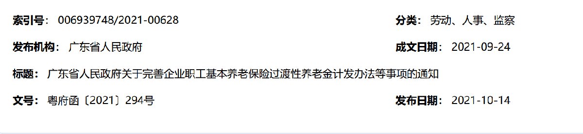 广东省人民政府关于完善企业职工基本养老保险过渡性养老金计发办法等事项的通知