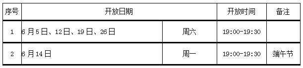 2021年6月份计划开放时间: