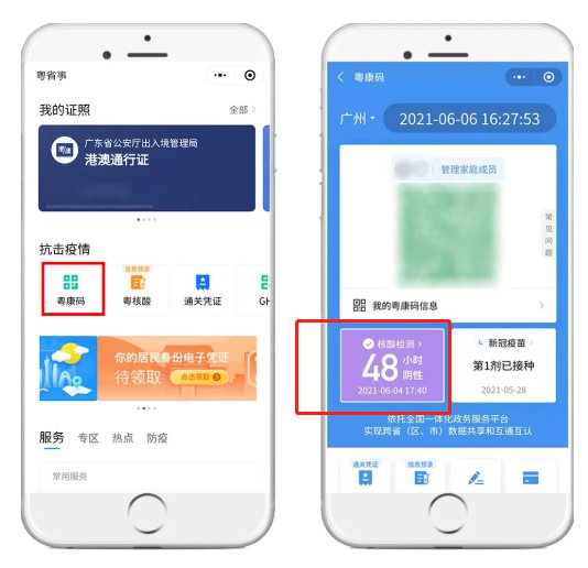 广东城市都是在粤省事小程序“粤康码”获取电子核酸检测阴性证明