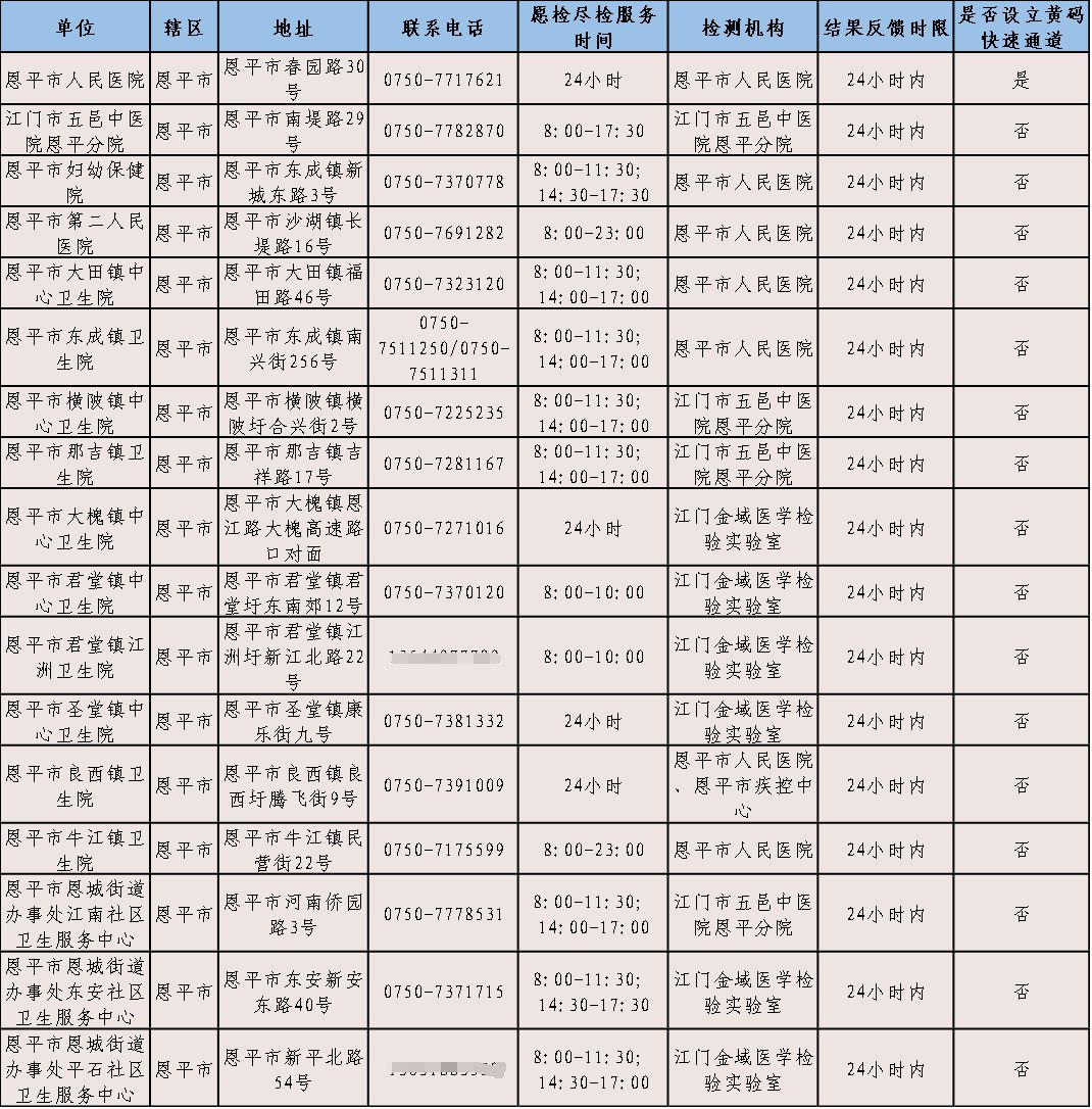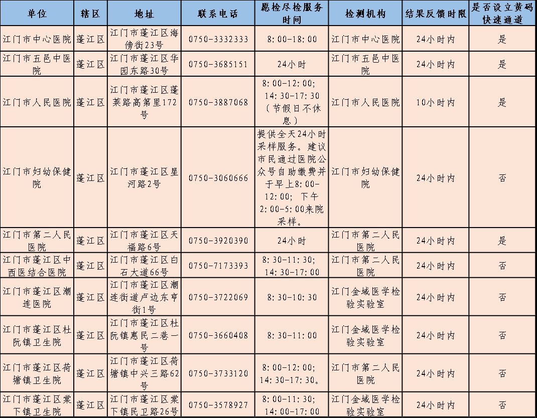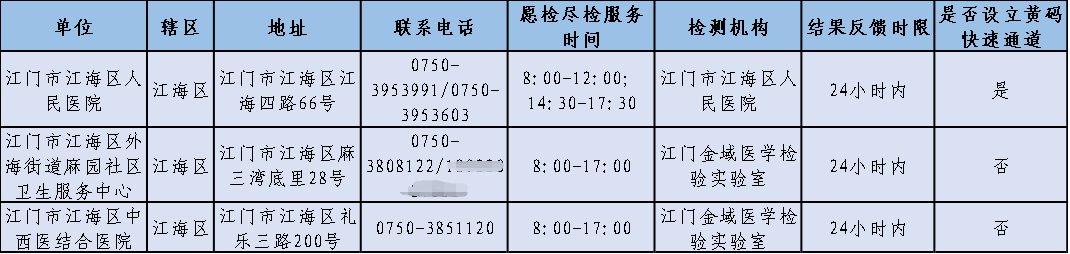 江门核酸检测地点