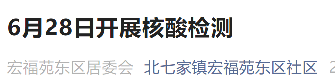 6月28日北京北七家镇宏福苑东区核酸检测通知